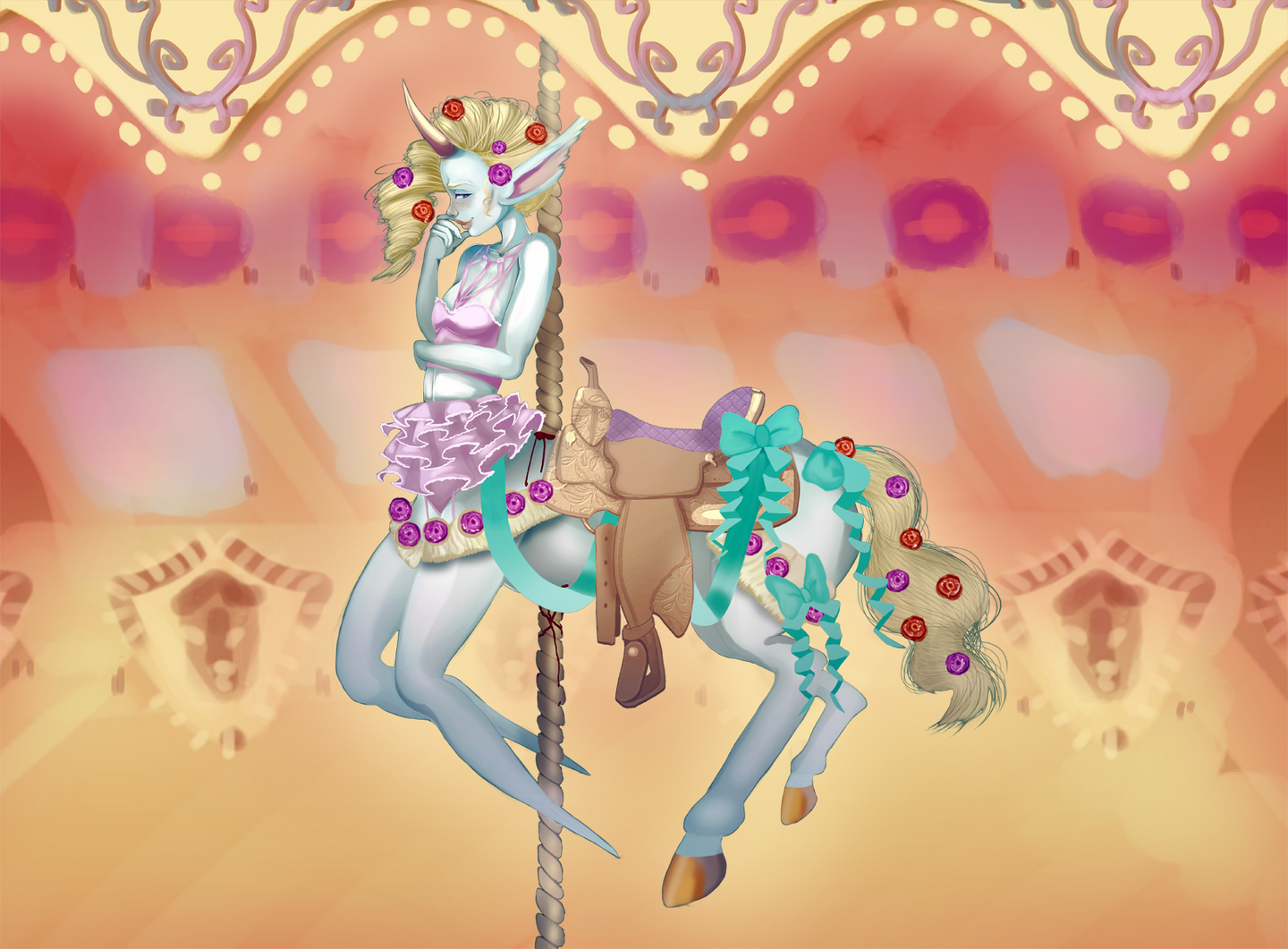Typical character pieces will be character focused only. Hiring me to draw your character means I will draw your character! You get a say in pose and style, of course, but there are no large items, background, or environment to interact with. It's your character on a relatively stagnant background! And yes, this can count towards couple and group shots, so long as there isn't anything extravagant happening!Illustrative pieces require a lot more work! You will see thumbnail sketches and concepts, where your character interacts with a full environment and/or additional characters.